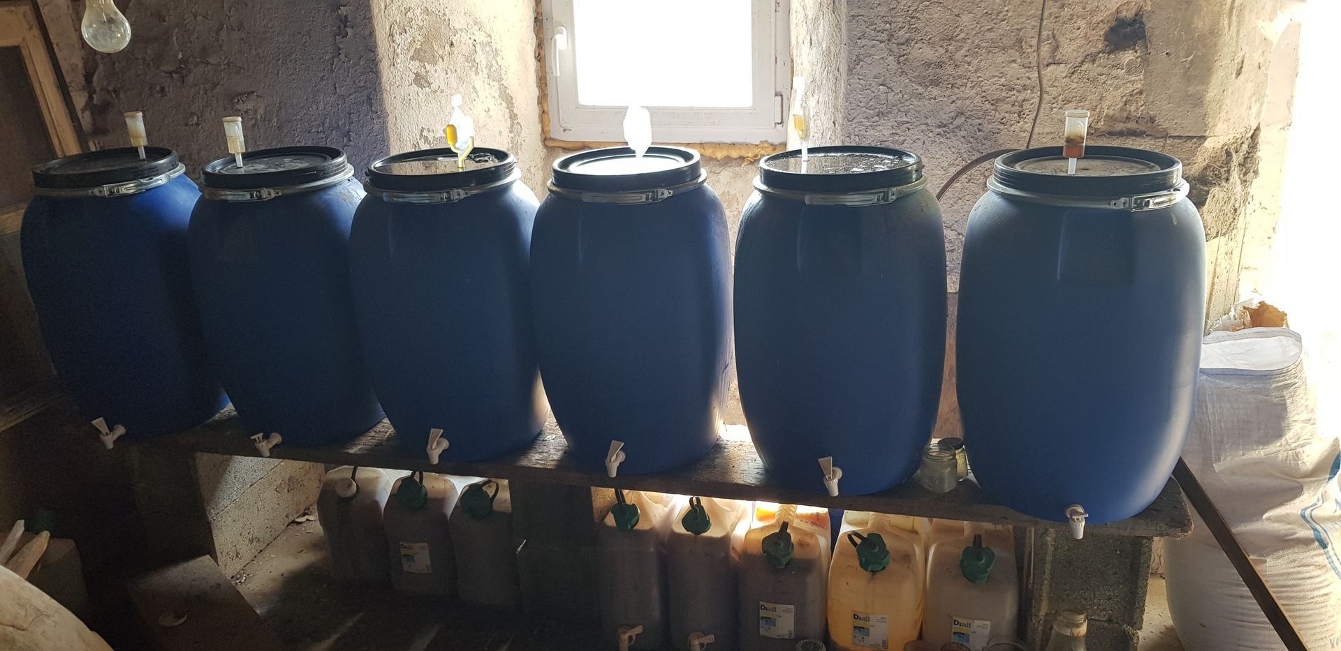 - La gestion de ma parcelle en arboriculture avec toutes les techniques agro-écologiques en mettant l'accent sur les extraits fermentés d'humus (lifofer), de plantes, de céréales,... (fabriqués à la maison), l'agro-homéopathie mais aussi un travail avec la dynamisation de l'eau via Vasque Vive. Au bout de la deuxième année, je peux déjà affirmer que les extraits fermentés sont efficaces pour fertiliser, soutenir la croissance mais aussi soutenir la plante en cas de manque d'eau et de stress hydrique de la plante.